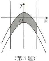 4. 如图,两条抛物线$y_1 = -\frac{1}{3}x^2 + 1$与$y_2 = -\frac{1}{3}x^2 - 1$分别经过点$(-3, 0)$,$(3, 0)$且与平行于$y$轴的两条平行线围成的阴影部分的面积为(