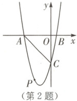 2. 如图,在平面直角坐标系$ xOy $中,二次函数$ y=ax^2+bx-5(a\neq0) $的图象与$ x $轴,$ y $轴分别交于点$ A,B $与$ C $,连接$ AC $,点$ P $为直线$ AC $下方抛物线上一点.