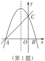 1. 中考新考法 存在性问题 (西宁十一中一模)如图,在平面直角坐标系中,抛物线$ y_1 = -x^2 + bx + c $与$ x $轴交于点$ B $,$ A(-3,0) $,与$ y $轴交于点$ C(0,3) $.
