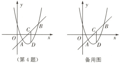 4. 如图,直线$ y = x - 2 $与抛物线$ y = ax^2 + bx + 2(a \neq 0) $相交于点$ A(1, -1) $和点$ B(m, 2) $.