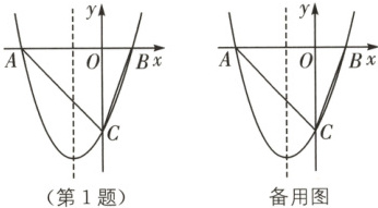1. (常州前黄实验中学模拟)如图,抛物线 $ y = \frac{1}{2}x^2 + 2x - 6 $ 与 $ x $ 轴交于 $ A $,$ B $ 两点(点 $ A $ 在点 $ B $ 的左侧),与 $ y $ 轴交于点 $ C $,连接 $ AC $,$ BC $。