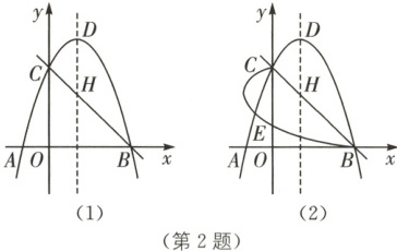 2.(江苏无锡外国语学校)如图(1),在平面直角坐标系中,抛物线$ y = ax^2 + bx + c(a \neq 0) $的图象与$ x $轴交于$ A(-1,0) $,$ B(3,0) $两点,与$ y $轴交于点$ C $,且抛物线的顶点$ D $的坐标为$ (1, 4) $,连接$ BC $,抛物线的对称轴与$ BC $交于点$ H $.