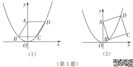 $ $;②如图(1),已知菱形$ ABCD $的顶点$ B,C,D $在该二次函数的图象上,且$ AD \perp y $轴,求菱形的边长;