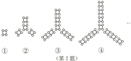2. [新情境 无人机表演] 2025年春节重庆2025架无人机编织盛宴,上演“宠粉”奇观! 如图是某公司设计的无人机表演图案,其中第①个图案有1架无人机,第②个图案有4架无人机,第③个图案有7架无人机,…,按照这一规律,第⑩个图案中无人机的架数是(