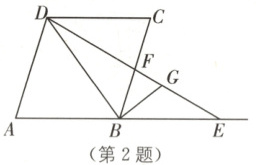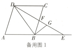 2.(烟台模拟)如图,$AB = 10$,将线段 $AB$ 绕点 $A$ 逆时针旋转 $\alpha(0^{\circ}<\alpha<180^{\circ})$ 得线段 $AD$,连接 $BD$,以 $AB,AD$ 为边作菱形 $ABCD$,在射线 $AB$ 上取一点 $E$,连接 $DE$ 交 $BC$ 于点 $F$,在 $FE$ 上取一点 $G$,使 $\angle CBG = \angle EBG$。