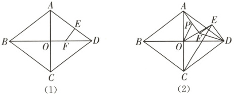 (1)如图(1),点 $F$ 在 $OD$ 上,$EF \perp AD$,垂足为 $E$,已知 $OF = EF$,求 $DE$ 的长;