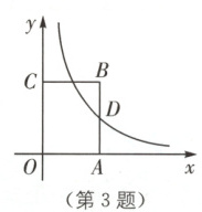 3. (盐城射阳二模)如图,反比例函数$ y = \frac{3}{x} $的图象经过矩形$ OABC $的边$ AB $的中点$ D $,则矩形$ OABC $的面积为$ $