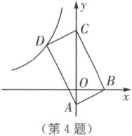 4. (南京建邺区一模)如图,在矩形$ ABCD $中,点$ A $的坐标是$ (0, -1) $,点$ B $的坐标是$ (2, 0) $,点$ C $在$ y $轴上。若反比例函数$ y = \frac{k}{x} $的图象经过点$ D $,则$ k = $