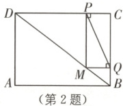 2. 实验班原创 如图,在矩形$ ABCD $中,$ AD = 3 $,$ AB = 4 $,$ M $为线段$ BD $上一动点,$ MP \perp CD $于点$ P $,$ MQ \perp BC $于点$ Q $,则$ PQ $的最小值为(