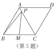 5. 将军饮马模型 如图,$ P $为菱形$ ABCD $的对角线$ AC $上一动点,$ M $为$ BC $的中点,连接$ PB $,$ PM $,$ AB = 2 $,$ \angle ABC = 60° $,则$ PB + PM $的最小值为(