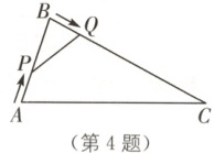 4.0.8或2 [解析]在△ABC中,AB=8cm,BC=16cm,动点P从点A开始沿边AB运动,速度为2cm/s;动点Q从点B开始沿边BC运动,速度为4cm/s.设经过t秒时,△QBP与△ABC相似,