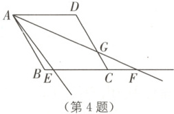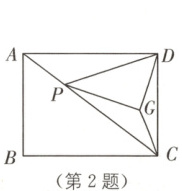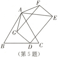 5. 如图,$ \triangle ABC $是等边三角形,矩形$ DEFG $的顶点$ D $在边$ BC $上,且$ BD = 3CD = 3 $,$ DE = AB = 2DG $,连接$ AG $,$ AE $,$ AF $,若将矩形$ DEFG $绕点$ D $旋转一周,当$ AG + AF $最小时,则$ AE $的长度为(