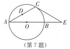 7. 如图,在$ \triangle ACE $中,$ \angle CAE = 30° $,半径为$ 5 $的$ \odot O $经过点$ C $,$ CE $是圆$ O $的切线,且圆的直径$ AB $在线段$ AE $上,设点$ D $是线段$ AC $上任意一点(不含端点),则$ OD+\frac{1}{2}CD $的最小值为