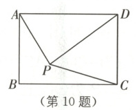 10. 如图,在矩形$ ABCD $中,$ AB = 18 $,$ BC = 25 $,$ P $是矩形内部一点,且$ AP = 15 $,连接$ PC $,$ PD $,则$ PC + \frac{3}{5}PD $的最小值为