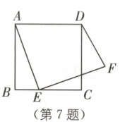7. 如图,在正方形 $ABCD$ 中,$AB = 4$,点 $E$ 为边 $BC$ 上一动点,将点 $A$ 绕点 $E$ 顺时针旋转 $90°$ 得到点 $F$,则 $DF$ 的最小值为