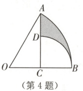 4. (鹤壁二模)如图,扇形$OAB$以点$O$为圆心,$4$为半径,圆心角$\angle AOB = 60°$,$C$为$OB$的中点,连接$AC$.以点$C$为圆心,$CB$为半径画弧,交$AC$于点$D$,则图中阴影部分的面积为