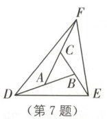 7. (泸州叙永三模)如图,$A,B,C$分别是线段$BD,CE,AF$的中点,若$\triangle DEF$的面积为$a$,则$\triangle ABC$的面积为