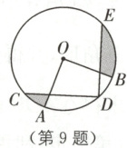 9. (汕头潮南区三模)如图,在$\odot O$中,$OA\perp OB$,$CD = DE=\sqrt{2}$,$\angle CDE = 90°$,则图中阴影部分的面积为