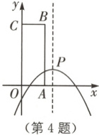 4. 在平面直角坐标系中,抛物线$ y = -\frac{1}{2}x^2 + 2x - 2 + m $的顶点为$ P $,如图,点$ A(m, 0) $在$ x $轴正半轴上,点$ C(0, 6 - m) $在$ y $轴正半轴上,以$ OA $,$ OC $为边作矩形$ OABC $。