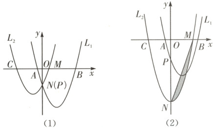 (2) 如图(1),当点$ P,N $重合时,求抛物线$ L_2 $的函数解析式及其顶点坐标;