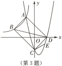 3. 如图,二次函数与反比例函数的图象有公共点$A(-2,5)$,$□ ABCD$的顶点$B(-5,p)$在双曲线上,$C$,$D$两点在抛物线上。(点$C$在$y$轴负半轴上,点$D$在$x$轴正半轴上)