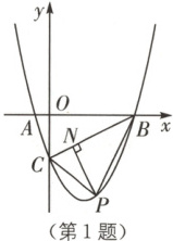 (2) 点$P$是抛物线在第四象限图象上的任意一点,求当$\triangle BCP$的面积最大时,边$BC$上的高$PN$的值。
