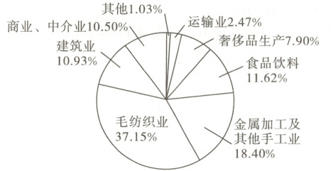 11. 下图反映的是中世纪后期西欧城市布鲁日(在今比利时)的职业比例。据此可知,布鲁日(