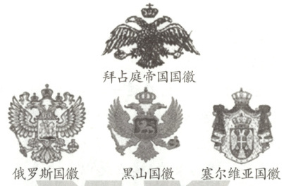 12. 【史料实证】今日大部分欧洲国徽的双头鹰标识都源自拜占庭帝国的国徽版本(如下图)。这表明拜占庭文化(