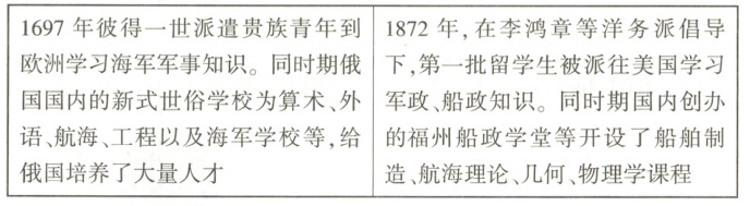 4. 【时空观念】对比同类历史事件是学习历史的基本技能之一。从下面描述中可得出,中俄两国改革的相同之处是(