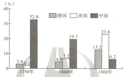 13. 【跨学科·数学】下图表示的是美国、德国、中国制造业的变化情况,美、德两国所占份额在1900年急速增长的共同原因主要是(