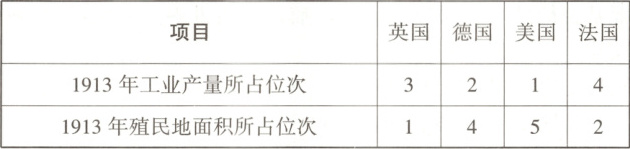 (1)根据材料一并结合所学知识,指出英、德、美、法四国实力对比的反差说明了什么问题。这种变化带来的后果是什么?(3分)