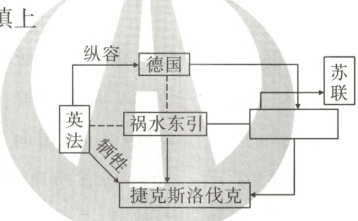 8.C 【解析】根据材料“德国”“捷克斯洛伐克”可知,这反映的是慕尼黑会议,1938年9月,英、法、德、意四国首脑召开慕尼黑会议,签订《慕尼黑协定》,强行把捷克斯洛伐克的苏台德等地区割让给德国,英法为了维护自身的利益,采取纵容德国的绥靖政策,牺牲捷克斯洛伐克的利益,企图使祸水东引到苏联,因此《慕尼黑协定》的签订将绥靖政策推向顶峰,C项正确;ABD项与材料不符,排除。