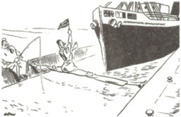 8. 下图为发表于1956年的时事漫画《苏伊士运河的巨人》。漫画中,一艘印有英、法、美三国国旗的轮船正通过苏伊士运河,时任埃及总统纳赛尔两腿横跨苏伊士运河,将其拦住。如果将该漫画作为研究性学习素材,其研究主题应是(