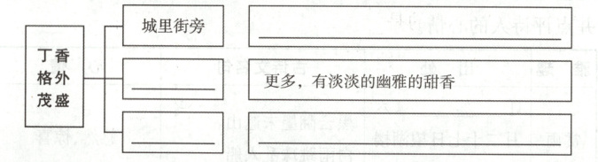 2. 选文中画“____”的句子运用了________和________的修辞手法,句中的“____”和“____”两个动词,生动地表现了丁香花活泼、灵动的特点。