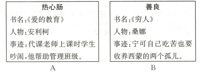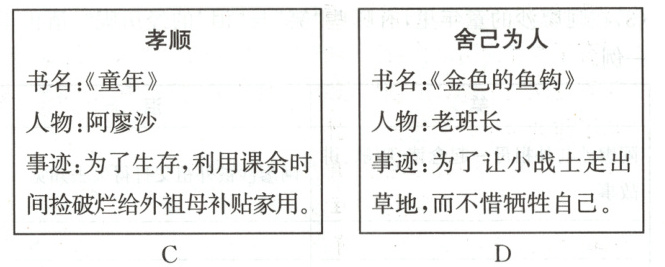 2. (台州三门)小明读完小说后,做了不同标签的阅读笔记,有误的一项是 …………………………………………………………………(