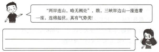 4. 假如你正拿着手机向大家直播三峡的风光,你会如何介绍呢?请你仿照例子,抓住文中的语句想象画面,写两三句“解说词”。