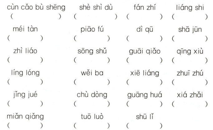 1.寸草不生 摄氏度 繁殖 粮食 煤炭 飘浮 地区 杀菌 治疗 松鼠 乖巧 清秀 玲珑 尾巴 歇凉 追逐 警觉 触动 光滑 狭窄 勉强 脱落 梳理
