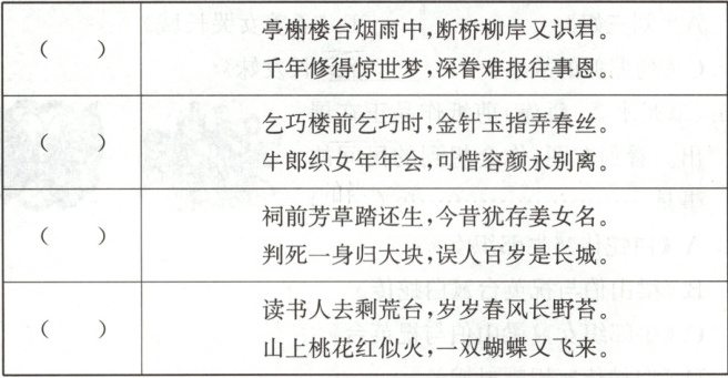 (3)同学们交流了含有民间故事的诗句,请你把民间故事的序号填入相应的诗句旁。