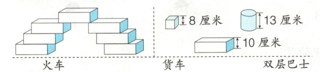 (2) 下面用积木搭成的车哪辆能从桥下通过?(