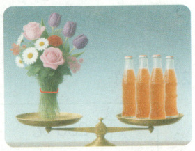 (1)李淘淘想用饮料来称花卉重量,已知每瓶饮料重500克,放了4瓶饮料后,天平与花卉平衡。下列说法正确的是(