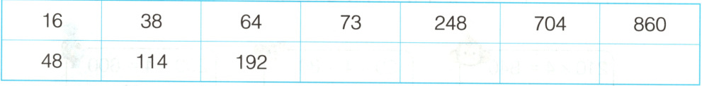 3. 先想一想第一行的数怎样才能得到第二行的数,再把表填完整。