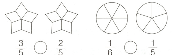 4.$\frac{3}{5}$ > $\frac{2}{5}$ $\frac{1}{6}$ < $\frac{1}{5}$