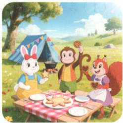 3. 小松鼠、小猴子、小兔子要共同完成一份饼干拼盘的任务。小松鼠拼了2块饼干,小猴子拼了4块饼干,小兔子拼了3块饼干。小松鼠拼了这份饼干拼盘的(