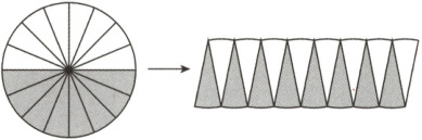 5. (温州永嘉、瓯海)推导圆的面积公式时,小明把一个半径为 3cm 的圆平均分成 16 份,再把它们拼成一个近似的长方形,这个长方形的长是(