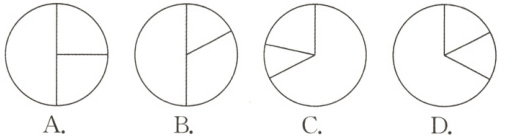 5. (宁波海曙)“七山一水两分田”是浙江省地形的概貌。如果用扇形统计图表示浙江省的地貌结构,则下面选项中大致能体现这地貌结构的是(