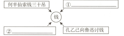 4.①蓝皮阿五私吞十吊钱 ②两掌柜相争十吊钱 5.示例:掌柜甲和掌柜乙互相推搡,咧着嘴,冒着汗,喘着粗气,带着坏笑;一只手指指少年鲁迅,用眼神暗示方才是在捉弄他,另一只手支在柜台上,表示玩累了;各自向后退,伸出双手表示可以妥协,然后双腿发软,瘫在地上,消失在柜台下。(任答两点即可) 6.示例一:我认为不呆板。首先,鲁迅小时候因家道中落,受尽了人们的白眼和冷淡,看穿了人情的奸诈浮薄,从而形成了冷静、自尊的性格。其次,萧红在这一幕戏中将他们与鲁迅置于同一舞台,使少年鲁迅以冷静、批判的目光来打量自己笔下的文学形象,少年鲁迅的冷静镇定和周围世界的鬼祟喧嚣形成了对比,使舞台上的人物形象更加鲜明、丰富。 示例二:我认为有些呆板。因为少年鲁迅上场后始终“不言不动不笑”,使得观众的注意力集中在两个掌柜的身上,而忽略了鲁迅的存在,少年鲁迅在舞台上的形象显得黯淡。这就难以让观众感受到鲁迅想要根治民族性的愿望和志向。(观点1分,理由2分,语言表述通畅1分,意思对即可) 7.示例一:我认为是喜剧。何半仙、掌柜、孔乙己等剧中人物的出场方式有喜剧效果;两掌柜为了典当的价格相互争执,互相推搡,最后互相协调,结果居然是一个平均数,充满喜剧效果。示例二:我认为是悲剧。单四嫂子给孩子看病,穷得要拿包孩子的袍皮去典当;两个掌柜毫无同情心,数落老主顾,为此上演了一出滑稽戏,他们拿救命的钱当儿戏,令人叹息。(观点1分,理由4分,语言表述通畅1分,言之有理即可) 8.示例一:《五猖会》(主角可以是鲁迅,可以是父亲,也可以是两个人)七岁那年,小鲁迅听到小姑母要接他去看五猖会的消息,兴奋极了。大清早小鲁迅就起来了。正准备出发,他被父亲留下来背《鉴略》。他长时间痛苦地背诵,心里始终向往着五猖会。母亲和阿长在一旁,想尽力帮助却又无可奈何。工人们在门口焦急地等待着。小鲁迅终于背完了,工人们将他高高举起。在大家的欢呼中,小鲁迅去看五猖会了。他虽然得以成行,但觉得索然无味。这次经历,让鲁迅认识到封建专制的家庭教育理念会戕害孩子的天性。 示例二:《藤野先生》(主角可以是鲁迅,可以是藤野先生,也可以是两个人)青年鲁迅到日本仙台医专学习,遇到了藤野先生。于留学期间,藤野先生关心鲁迅学习与生活,为他修改讲义、纠正血管图,还向他了解中国妇女裹脚的情况。这一幕有追求享乐的清国留学生,还有歧视清国的日本同学。鲁迅做解剖实验时,日本同学嘲笑他,他深深地体会到弱国国民的辛酸。鲁迅怀着救国救民的抱负去日本求学,但“看电影事件”使他认识到最要紧的是改变国人的精神,从而毅然走上了弃医从文的道路。(需有主角配角、剧情合理,思考正确,表述清晰,酌情给分)