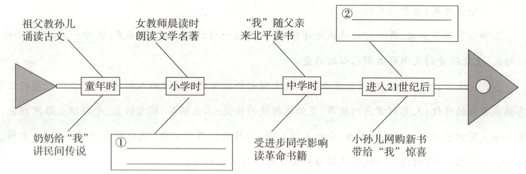14.①日军侵略时,“我”听大同学读抗日书籍 ②“我”为小孙儿选读童书名著
