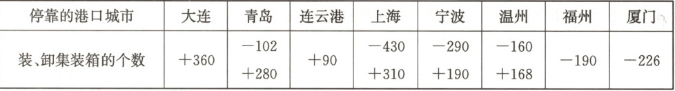 1. 一艘货轮从大连开出,途经青岛、连云港、上海、宁波、温州、福州,最后抵达厦门。下表记录了这艘货轮装、卸集装箱的情况。(装集装箱记为正,卸集装箱记为负)