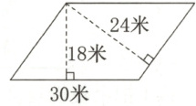 2. 开心社区计划在一块平行四边形的空地上新建一块户外活动区(如图),为避免活动区内的球类运动干扰到道路正常秩序,要给活动区围上一圈防护网,至少需要准备多少米的防护网?(6 分)
