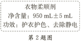 2. 新情境·生活体验 下图是一种衣物柔顺剂的标签,现在质检员随机抽取四瓶这种衣物柔顺剂,测得它们的净含量分别是:①号瓶$954\mathrm{mL}$;②号瓶$946\mathrm{mL}$;③号瓶$944\mathrm{mL}$;④号瓶$955\mathrm{mL}$。这四瓶衣物柔顺剂中,(